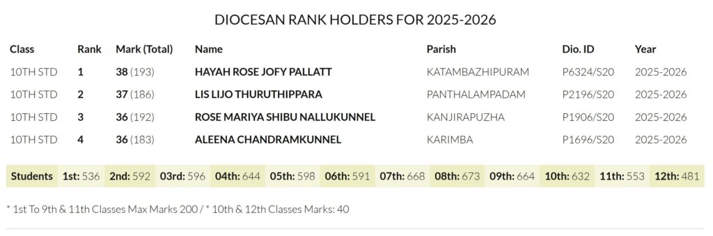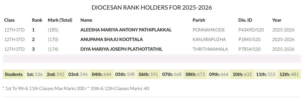 Sunday Catechism Rank List 2025-2026